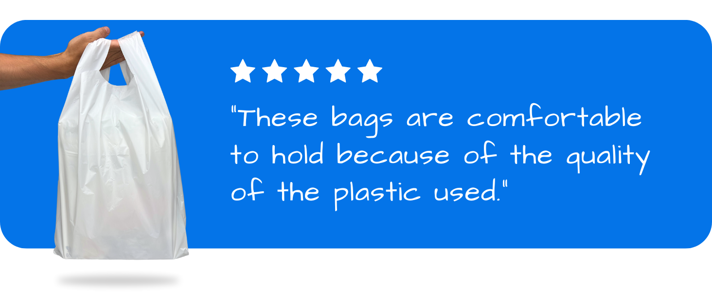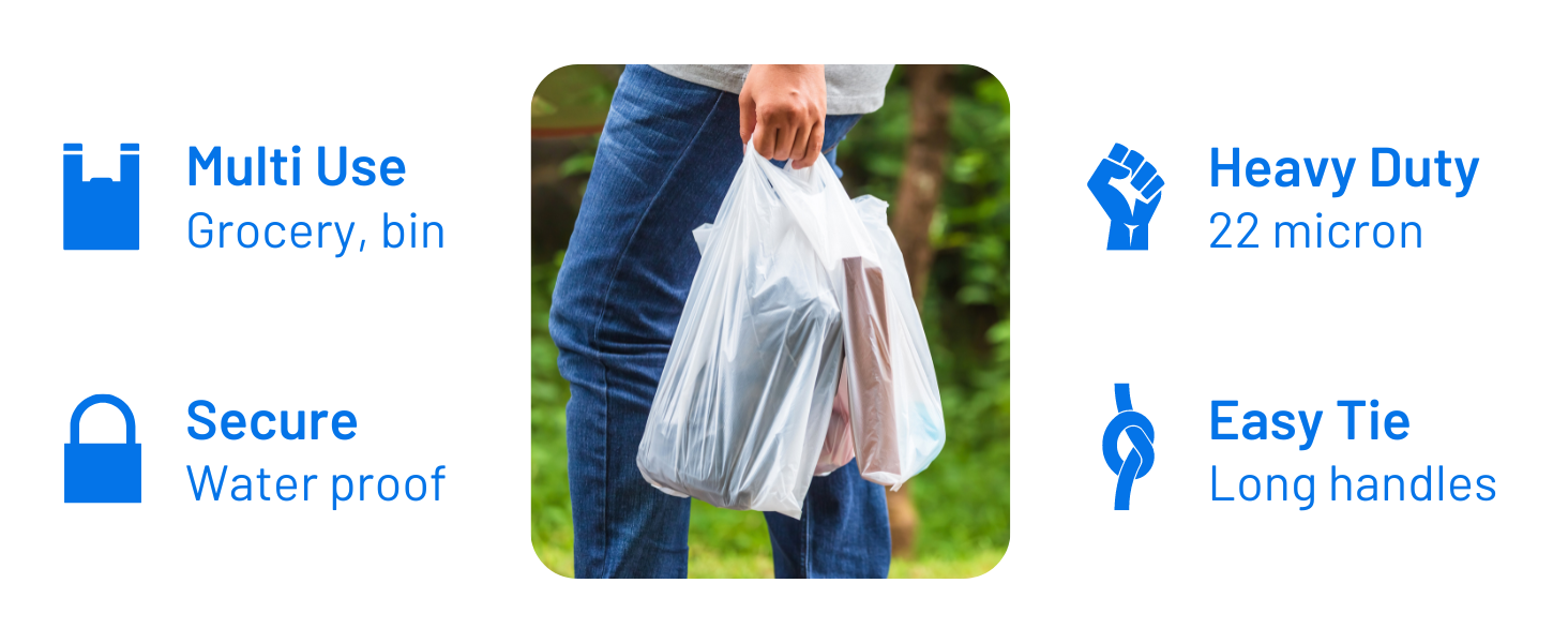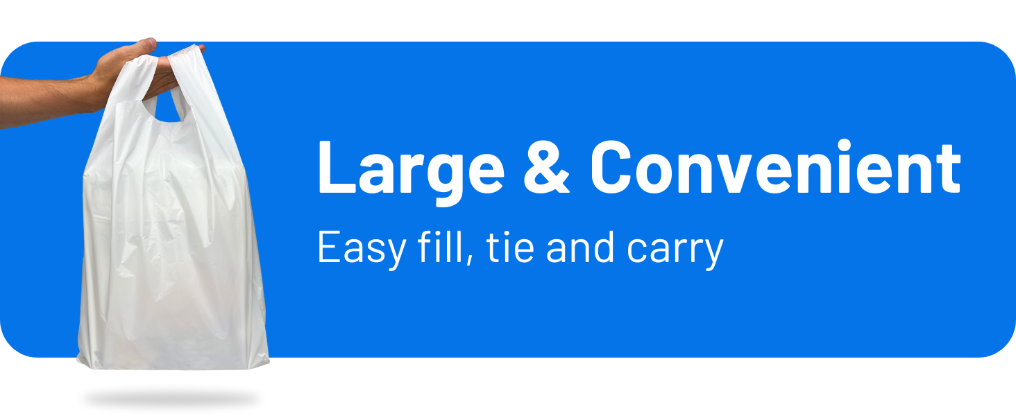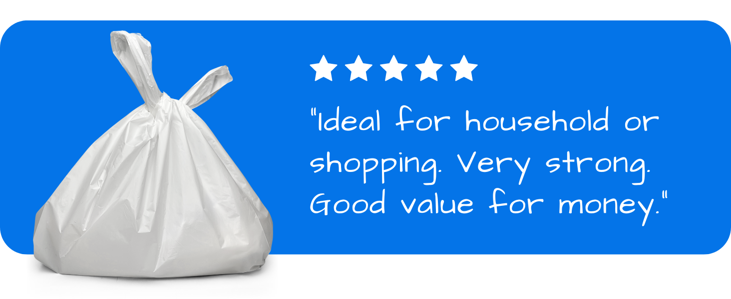 Strong, waterproof, and reusable, these 22mu thick plastic carrier bags are made from high-tensile recyclable polyethylene. Perfect for retail, groceries, takeaway, travel, or general use. Their large size with side gussets offers plenty of space, while the durable design ensures secure carrying—even for heavy or wet items.